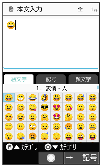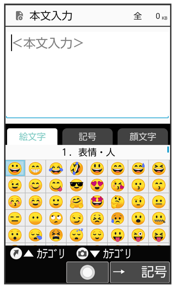 (→記号/→顔文字)を押し、表示を切り替えてください。