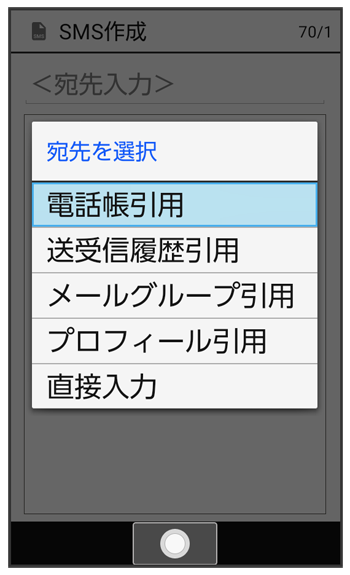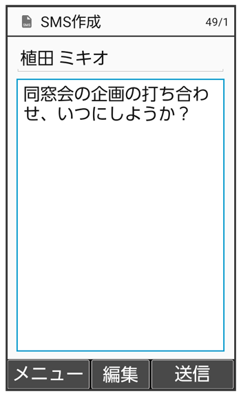 SMS作成画面で本文入力欄を選択こちらで検索できます