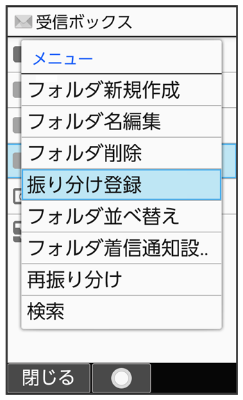 相手のメールアドレスや、件名などによって、自動的にメールをフォルダに振り分けることができます。ここでは電話帳に登録している差出人を指定してメールを振り分ける方法を例に説明します。