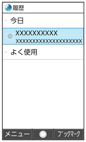 履歴画面で履歴を選択- 履歴がブックマークに登録済みのときはと操作すると、ブックマークから削除できます。