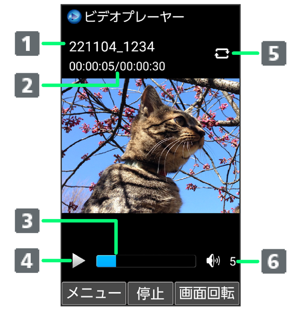 - 動画再生画面で