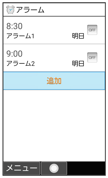 指定した時刻/曜日にアラームを鳴らす方法を例に説明します。