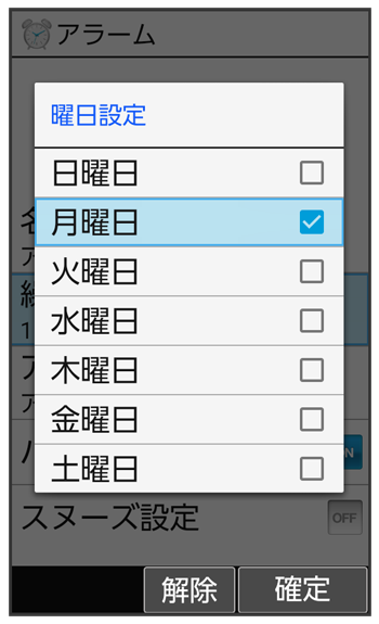 アラーム設定画面でアラーム音を選択- 確認画面が表示されたときは、画面に従って操作してください。