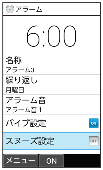 - スヌーズ(設定した間隔でくり返しアラームが鳴る機能)も設定できます。