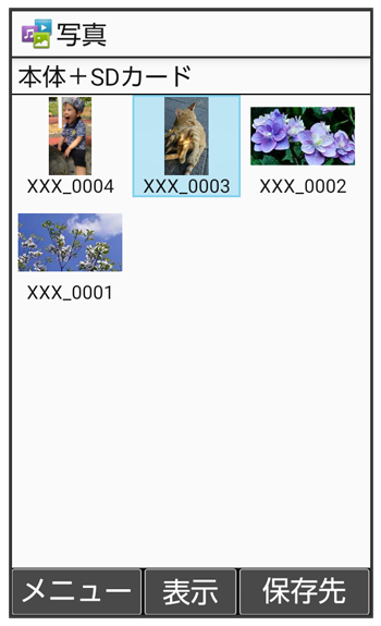 - 「写真」/「画像」/「動画」のファイル一覧画面で切り替えることができます。
