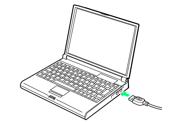 パソコンのUSB端子に、USB Type-CケーブルのUSBプラグを差し込む