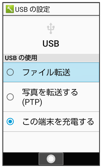 - PTPモードで接続されているときは、通知パネルのと操作します。