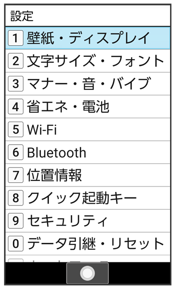 | 待受画面・壁紙 | 待受画面の壁紙や表示内容を設定します。 詳しくは、「待受画面の画像を変更する」を参照してください。 |