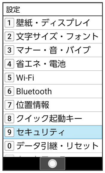 画面のロックや暗証番号など、セキュリティに関する機能を設定できます。設定できる項目は次のとおりです。