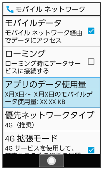 - 以降、使用中に上限に達したときは、モバイルデータ通信を無効にした案内が表示されます。このときは、画面に従って操作してください。