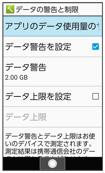 モバイルデータ使用量画面が表示されます。