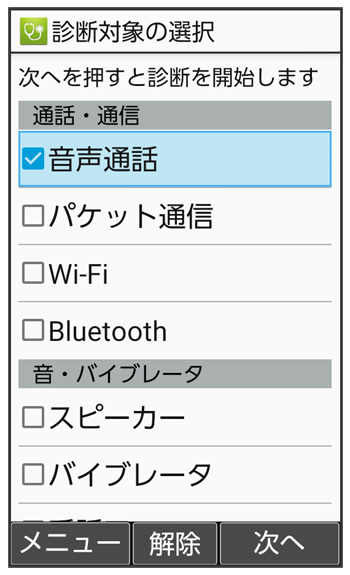 セルフチェック画面が表示されます。