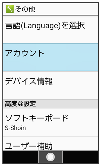 アカウント画面で追加するアカウントの種類を選択同期するアプリをアカウントごとに設定する
