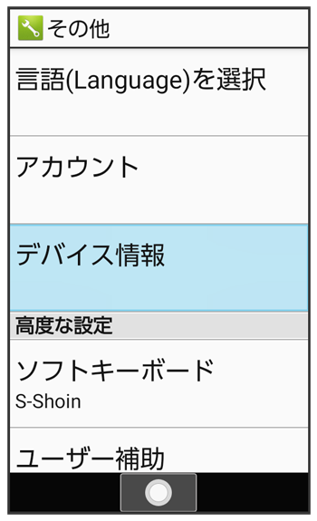 デバイス情報画面で