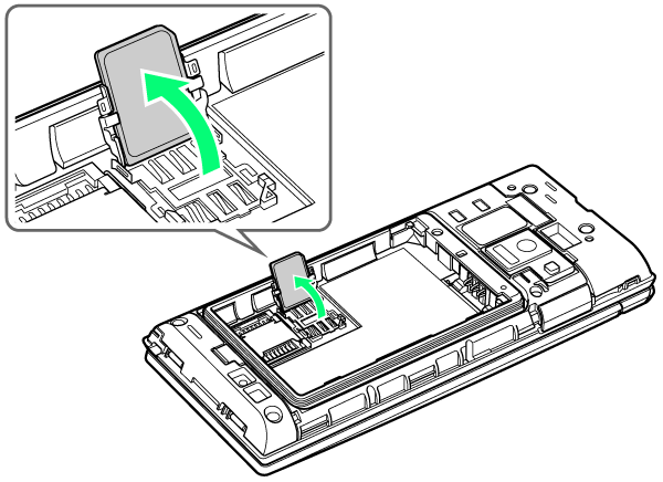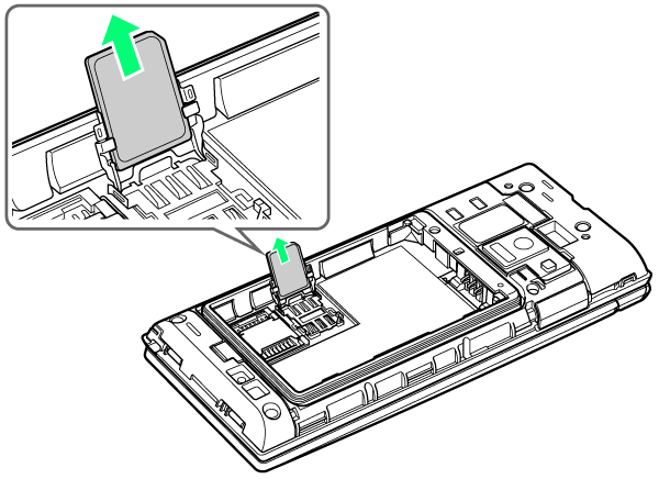 USIMカードを矢印の方向にスライドさせ、USIMカードスロットカバーから取り外す