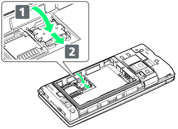 - USIMカードスロットカバーを指の腹で押しながら、矢印の方向にカチッと音がするまで動かしてロックを解除します。