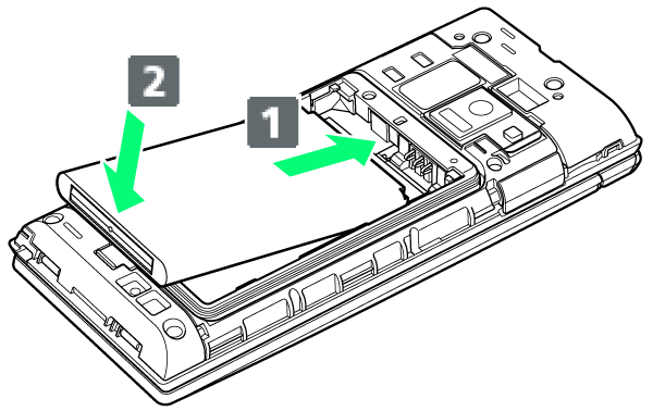電池カバーと本機を合わせるように置き、電池カバーを矢印の方向へ押す