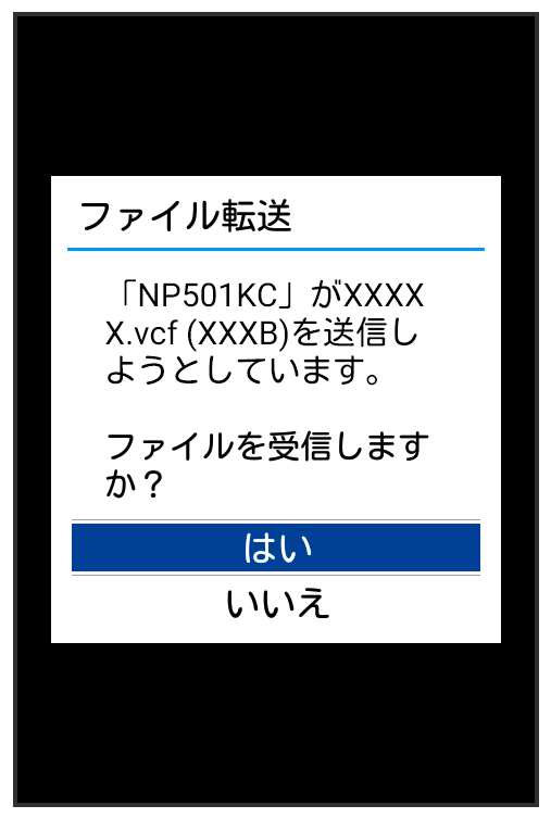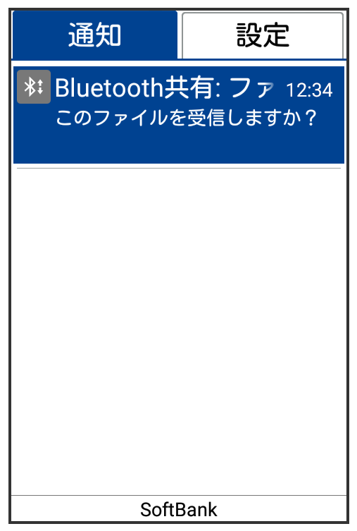 ペア設定している機器からデータが送信されると、データの受信要求を受信します。本機で次の操作を行うと、データを受信できます。
