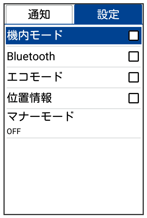 設定パネルを利用すると、機内モードやBluetooth®などのON/OFF、マナーモードの設定ができます。