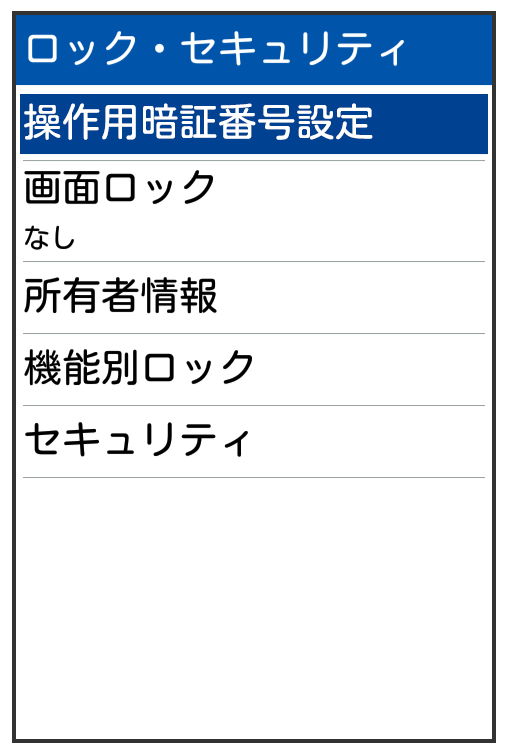 オールリセットや機能別ロック、各種設定での操作用暗証番号入力画面で画面に従って操作- 操作用暗証番号には、現在の操作用暗証番号の入力が必要です。