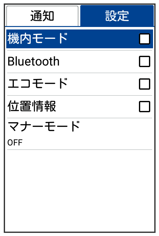 また、を設定したあとにBluetooth®機能を有効にすると、機内モード設定中でもBluetooth®通信を行うことができます。通信が許可されている場所であるか確認のうえ、操作してください。