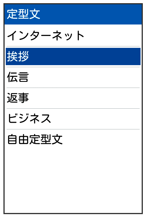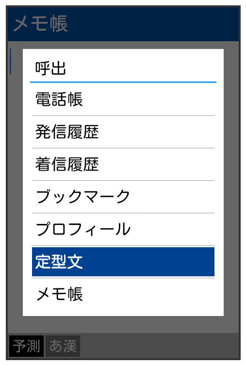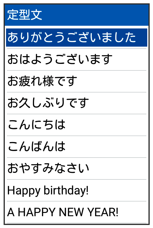 - 定型文メニュー画面でを選択すると、登録した定型文が利用できます。