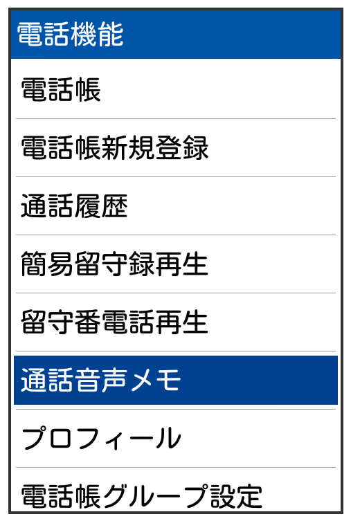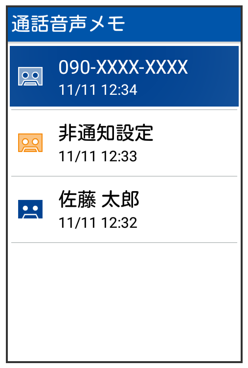 通話音声メモ一覧画面で通話音声メモを選択- 通話音声メモ再生画面で