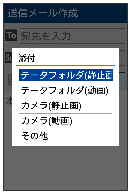 - を選択すると、データフォルダからビデオ/動画を選択して添付できます。
