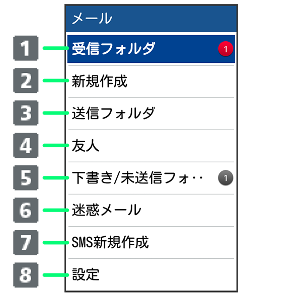 - 未読メール、下書き/未送信メールの件数が表示されます。