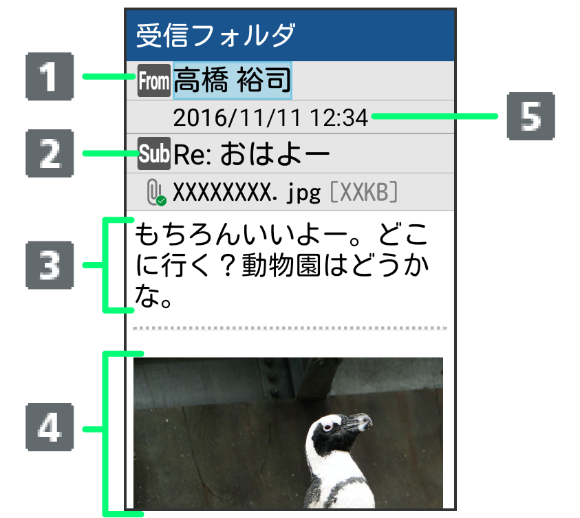 受信メール詳細画面でS!メールに添付されている画像を保存する