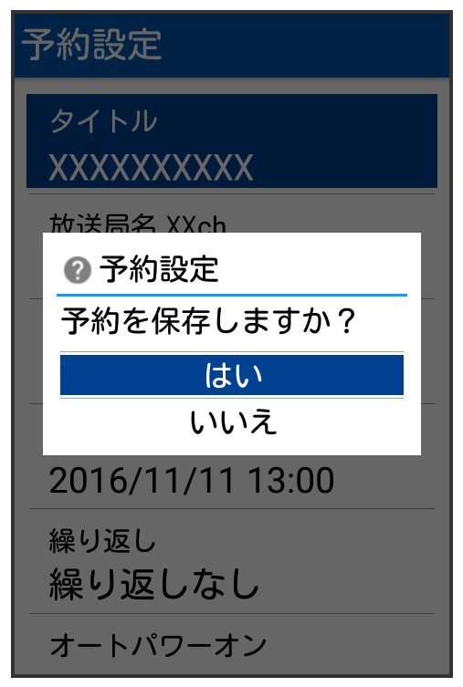 視聴予約設定画面でタイトルを入力繰り返し設定を登録する