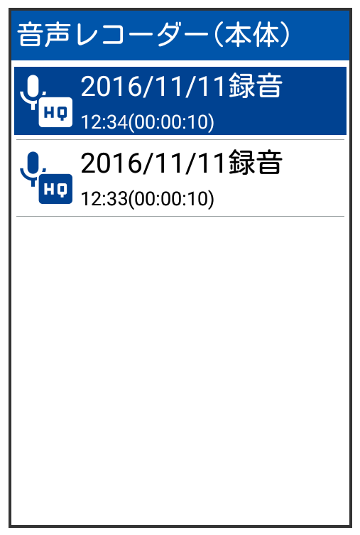 音声一覧画面で削除する音声を選択- 音声再生画面で