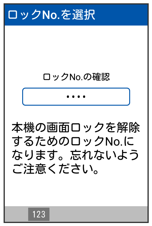 ロックNo./パスワード入力画面で、設定したロックNo./パスワードを入力画面ロックの設定を解除する