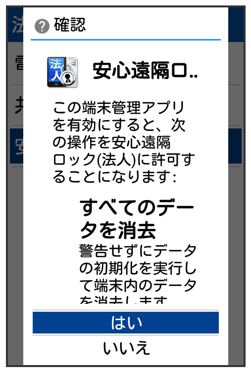 が表示され、法人安心遠隔ロックが設定されます。