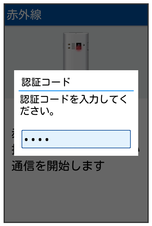 認証コードは、正しい通信相手かどうかをお互いに確認するための暗証番号です。送信側/受信側で同じ数字(4桁)を入力します(特に決まった数字はなく、その通信限りのものです)。