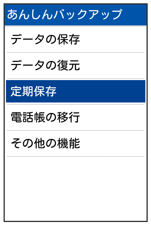保存先をに設定したときは、電話帳データ/お気に入りデータ/カレンダーデータのみ保存します。 - メールデータは定期保存できません。