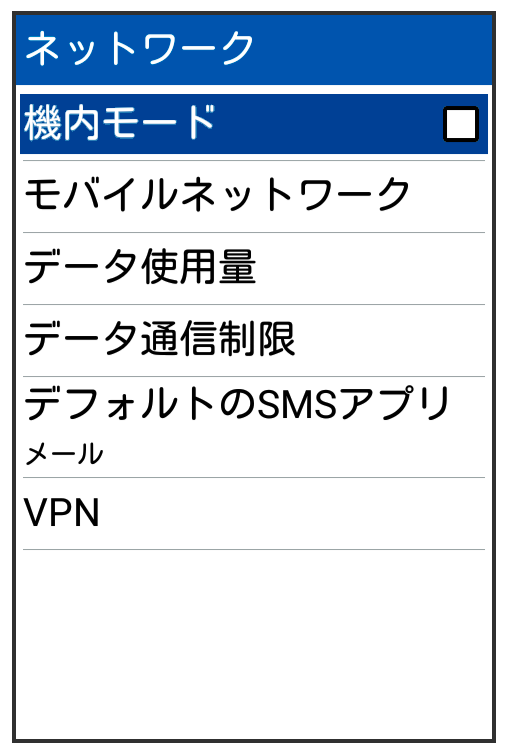 機内モードなどネットワークに関する機能を設定できます。設定できる項目は次のとおりです。