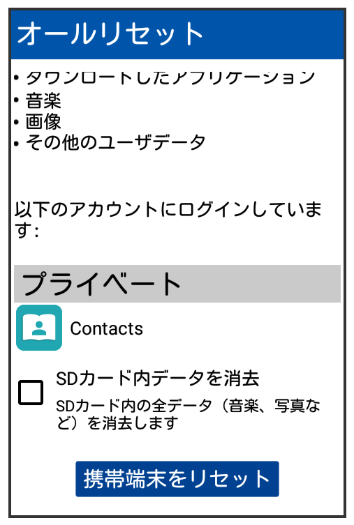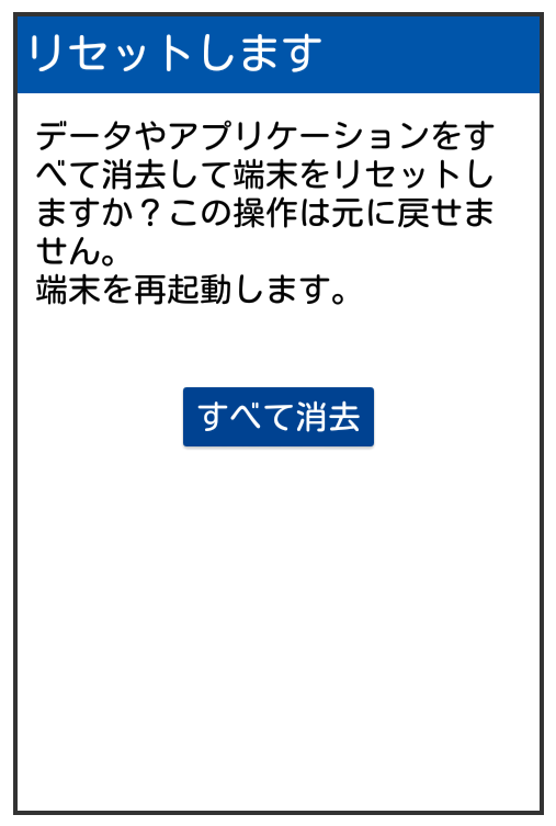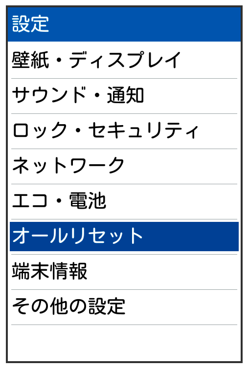 オールリセットすると、本体メモリのデータがすべて消去されます。必要なデータは事前にバックアップをとることをおすすめします。