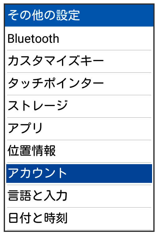アカウントの追加ができます。また、追加したアカウントの同期について設定できます。