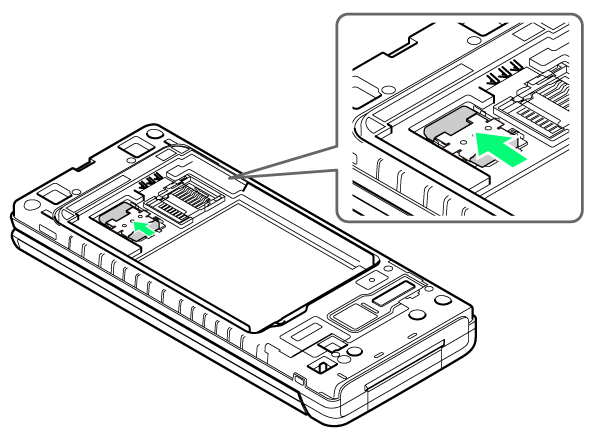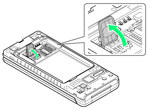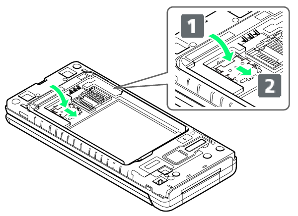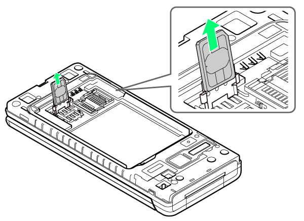 USIMカードを矢印の方向にスライドさせ、USIMカードスロットカバーから取り外す