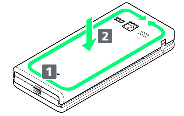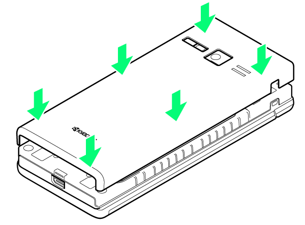 電池カバーと本機を合わせるように置き、電池カバーを矢印の方向へ押す