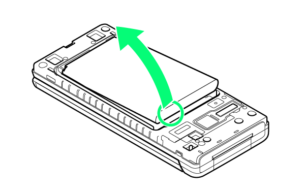 - 外部接続端子部のくぼみに指先をかけて、電池カバーを矢印の方向へゆっくりと持ち上げるようにして取り外してください。