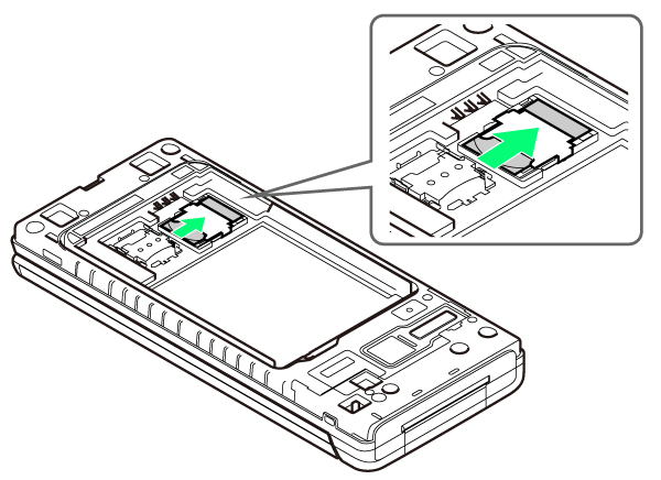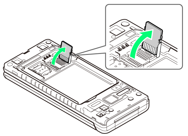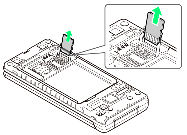 SDカードを矢印の方向にスライドさせ、SDカードスロットカバーから取り外す