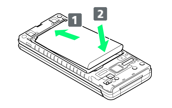 電池カバーと本機を合わせるように置き、電池カバーを矢印の方向へ押す
