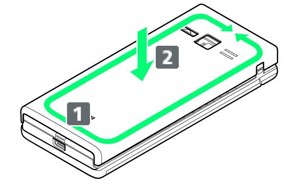 電池カバーと本機を合わせるように置き、電池カバーを矢印の方向へ押す