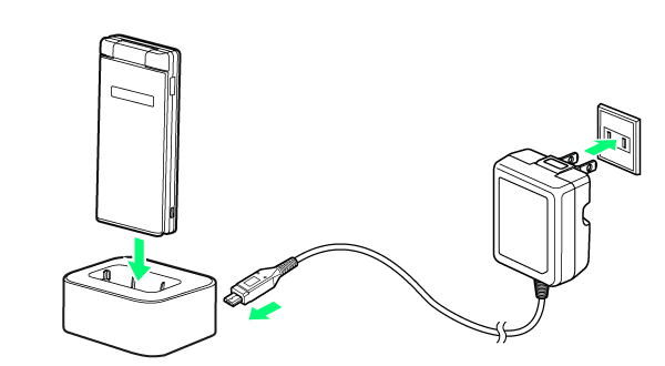 ここでは、卓上ホルダー[KYEAQ1]と、別売のACアダプタ(microUSB Quick ChargeTM 2.0対応)[ZSDBA4]1を使用して充電する方法を例に説明します。