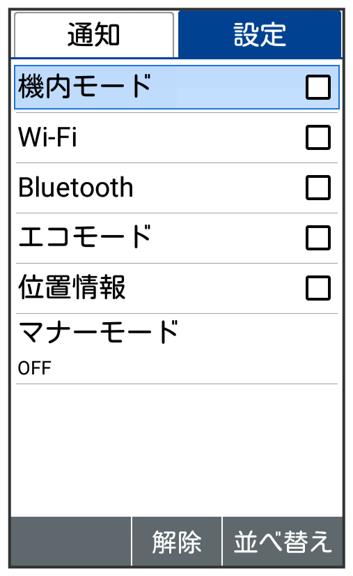 また、を設定したあとにWi-Fi機能やBluetooth®機能を有効にすると、機内モード設定中でもWi-Fi機能やBluetooth®通信を行うことができます。通信が許可されている場所であるか確認のうえ、操作してください。