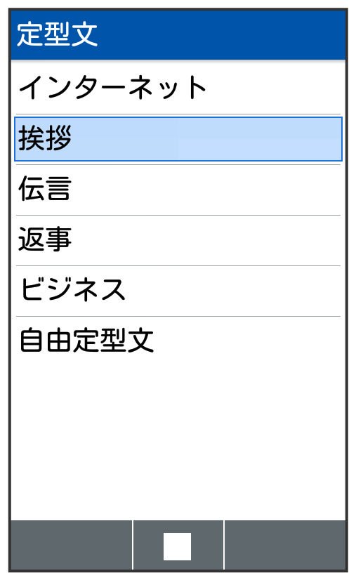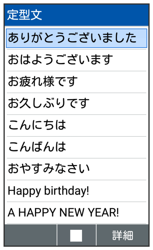 - 定型文メニュー画面でと操作すると、登録した定型文が利用できます。