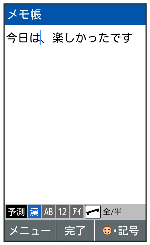 「今日は、楽しかったです」を「今日はとても楽しかったです」に修正する方法を例に説明します。