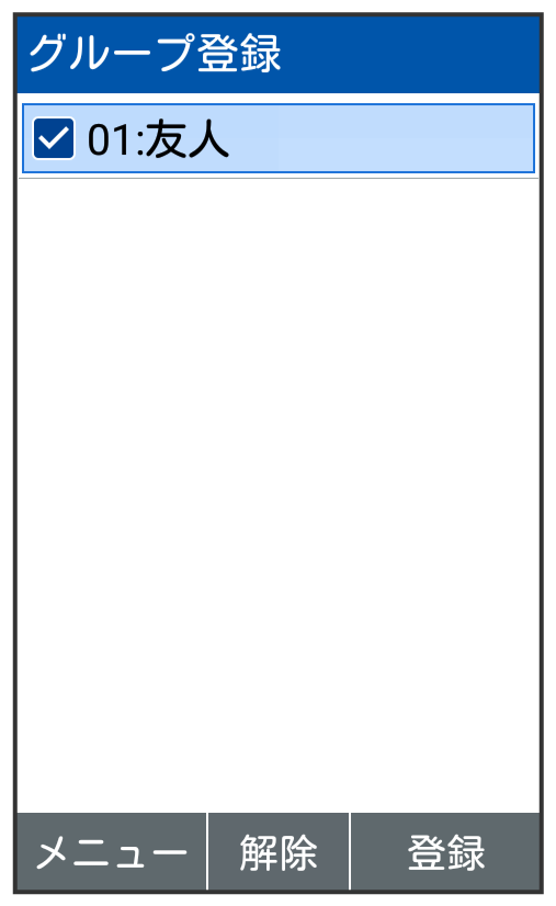 電話帳に、名前、電話番号、メールアドレス(いずれかの入力は必須)、グループを登録する方法を例に説明します。